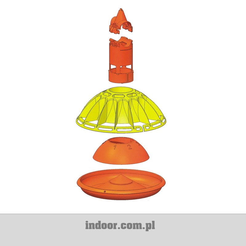 Osłona tuby z 14 przegrodami zapobiega dostępowi piskląt do wnętrza misy,